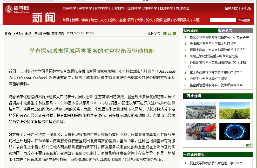 近日,低调看球-低调jrs看球app 李凯团队在城市发展研究领域期刊《可持续城市与社会》(Sustainable Citiesand Society)发表研究论文,探究了城市化区域生态系统服务与基本公共服务的时空权衡及其驱动机制。