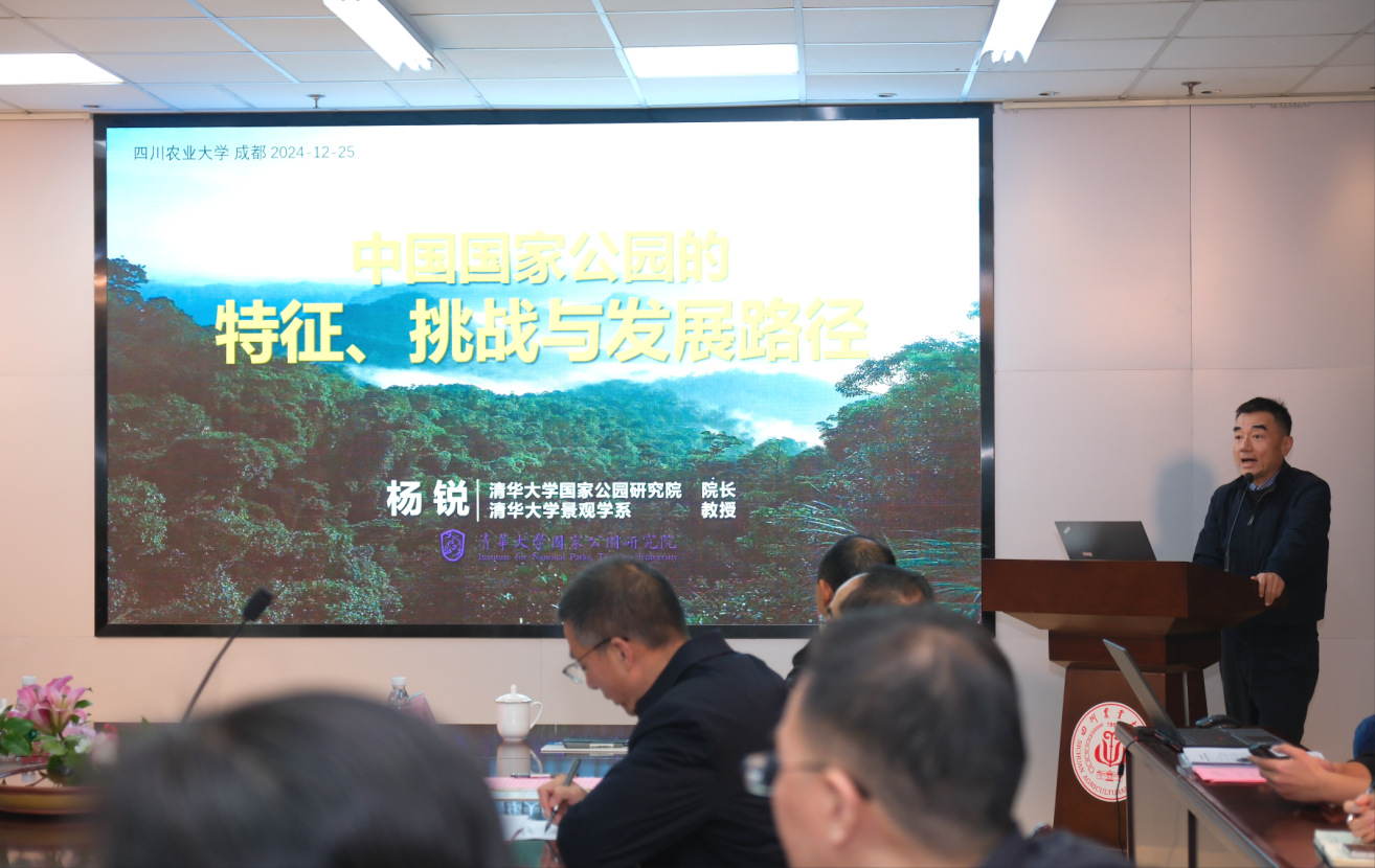 12月25日上午,低调看球 国家公园研究中心(以下简称“研究中心”)成立暨学术研讨会召开。学校副校长王际睿教授、国家林草局清华大学国家公园研究院院长杨锐教授、省林草局科教处张黎明处长、省林学会白斌秘书长、大熊猫国家公园成都管理分局谢玉常副局长、德阳管理分局赵卫红副局长、成都市公园城市建设发展研究院陈明坤院长、省林科院科研处冯秋红处长、中科院成都山地所张远彬研究员、省林调院自然保护地所黄鹤所长,大熊猫国家公园彭州、绵竹、汶川管护总站负责人,以及低调看球 院领导、原院长陈其兵教授和100余师生齐聚一堂,共商大计,共谋发展。