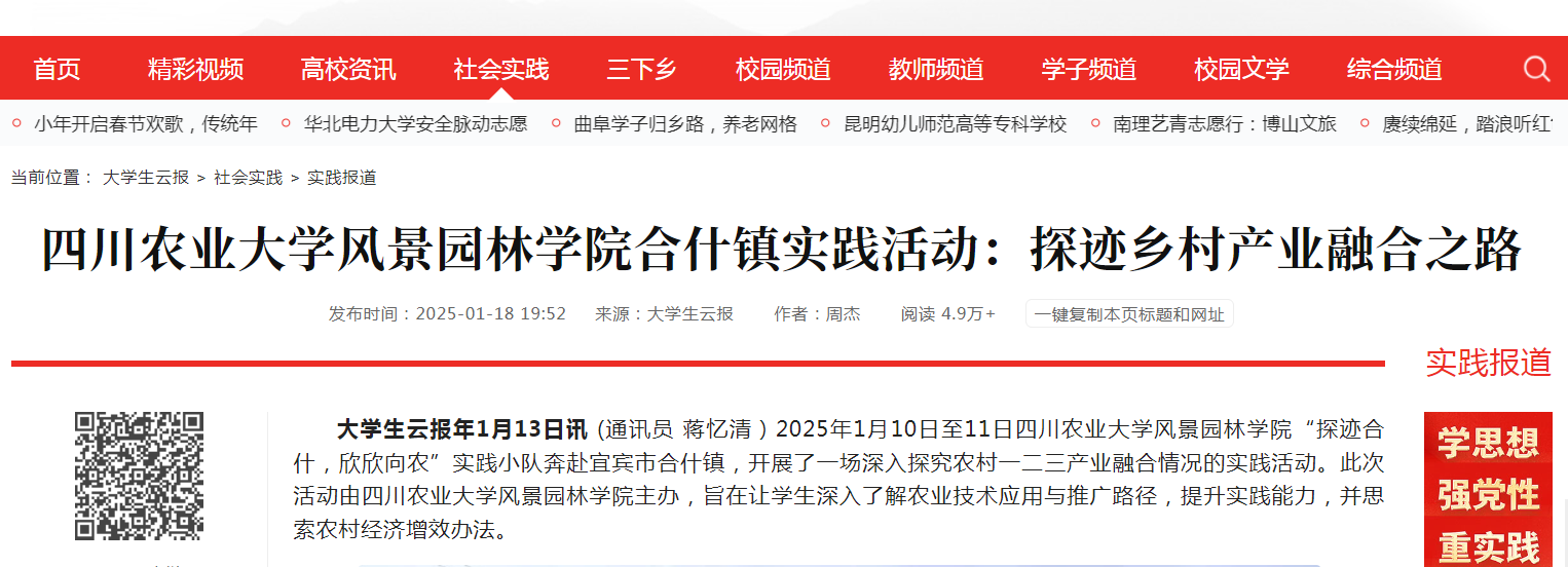 2025年1月10日至11日低调看球-低调jrs看球app “探迹合什,欣欣向农”实践小队奔赴宜宾市合什镇,开展了一场深入探究农村一二三产业融合情况的实践活动。此次活动由低调看球-低调jrs看球app 主办,旨在让学生深入了解农业技术应用与推广路径,提升实践能力,并思索农村经济增效办法。
