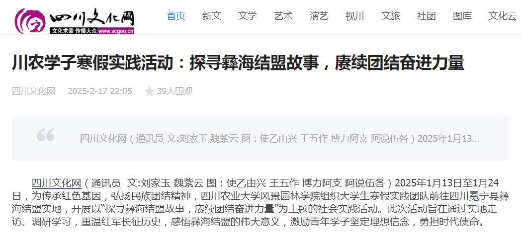 四川文化网(通讯员 文:刘家玉 魏紫云 图 : 使乙由兴 王五作 博力阿支 阿说伍各)2025年1月13日至1月24日,为传承红色基因,弘扬民族团结精神,低调看球-低调jrs看球app