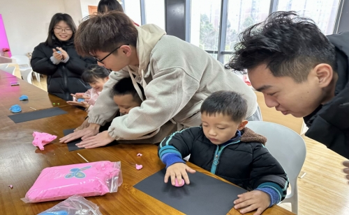 宣讲结束后,为进一步加深小朋友们对绣球花的了解,团队成员与小朋友们一起利用粘土、卡纸、木棍等工具制作绣球花手工,该环节赢得了小朋友的喜爱,团队成员手把手教小朋友制作,耐心回答他们的问题,小朋友们积极与团队成员互动,认识并学习绣球花的知识,最终制作出精美的绣球花手工作品。