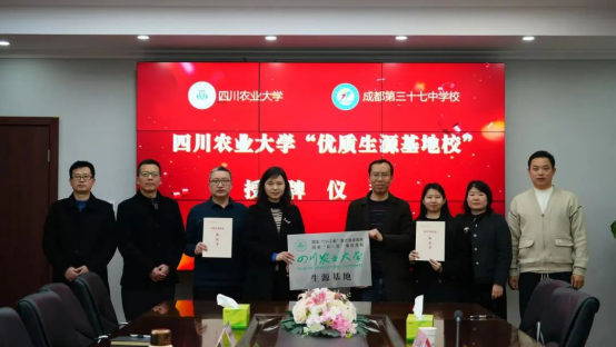在与会人员的共同见证下,四川农业大学向成都市第三十七中学校授予“优质生源基地校”牌匾,双方围绕学生培养、科技创新等内容进行了深入探讨。双方一致认为,此次合作将实现资源共享、优势互补,为学生的全面发展注入新动力。仪式最后,双方合影留念,为此次合作留下珍贵记忆。