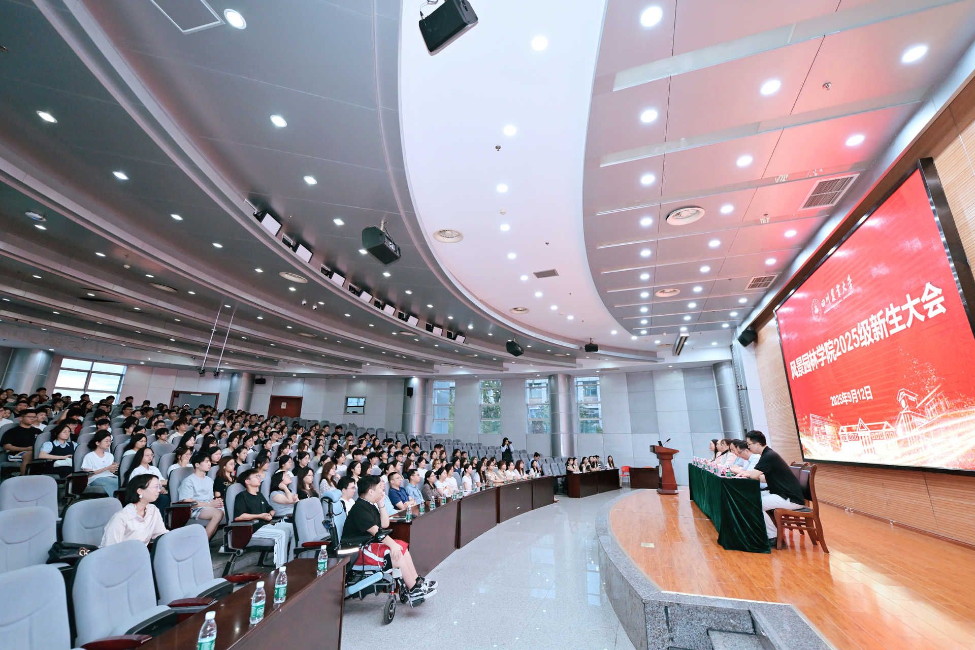 9月12日晚7时,低调看球-低调jrs看球app 2025级本科新生大会在成都校区二教报告厅隆重举行。院长李西教授、副院长蔡军教授、姜贝贝教授及各系部主任、教师代表、新生班主任及全体2025级低调看球 本科新生参加典礼,大会由低调看球 党委书记饶远林主持。