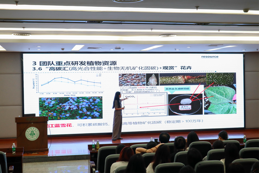 学 院六大科研团队:“功能型观赏植物资源挖掘与品种创新团队”“美丽竹林风景线产业融合创新团队”“西蜀园林创新与运用研究团队”“华西雨屏区景观生态修复技术研究团队”“西南特色园林植物资源挖掘与应用团队”“国家公园与健康景观团队”由高素萍教授、江明艳教授、孙大江教授、宋会兴教授、贾茵教授、李凯副教授分别就其主要研究方向与科研成果作了精彩介绍。