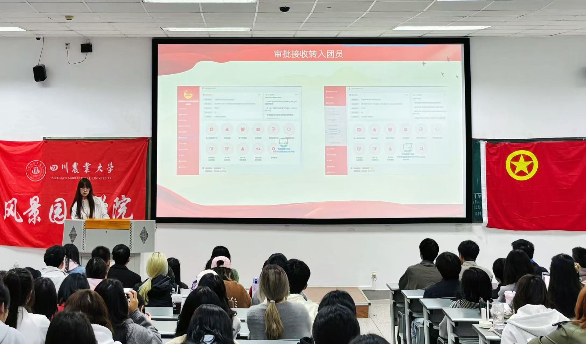图为低调看球 团委组织部部长禹畹秋分享“智慧团建”使用指南
