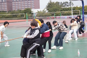图1 拔河队决赛获奖班级与班主任老师一同合影