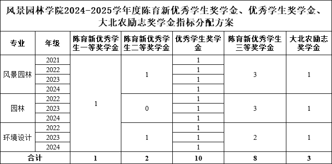 4.除上述拟评者外,根据分配指标,风景园林专业、园林专业、环境设计专业申请者中综合学业成绩位点在同年级同专业按指标数排名最前者,拟评陈育新优秀学生三等奖学金;