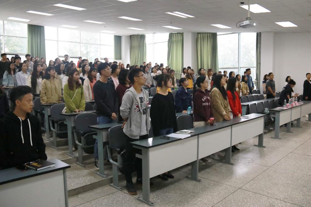 本次会议以全体起立齐唱国际歌拉开帷幕。为调动大家的热情和积极性,风院青年先锋队邀请到低调看球 演唱队的同学为大家演唱歌曲《红旗飘飘》。随着激昂的歌声回荡,同学们的热情也被点燃,大家不禁跟唱到“五星红旗,你是我的骄傲……”。