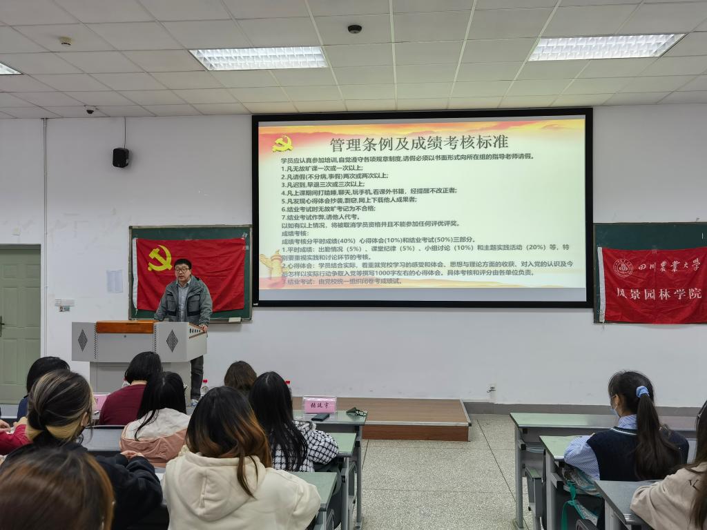 开班仪式上,王丽萍围绕党校学习培训对进一步引领入党积极分子懂得党的性质、纲领、宗旨、组织原则和纪律,学懂弄通党员的义务和权利,得到思想淬炼、政治历练、道德修炼,准确把握入党的资格条件,端正入党动机,树牢理想信念的意义和价值进行了讲解,党校对奠定入党积极分子在组织上入党、思想上入党和行动上入党的重要作用做了介绍。相关负责老师介绍了党校入党积极分子培训班的管理条例及成绩考核标准、各分组的指导老师安排及组内组织管理细则等,特别对考核要求的重点事项和分组实践的规范要求做了强调。