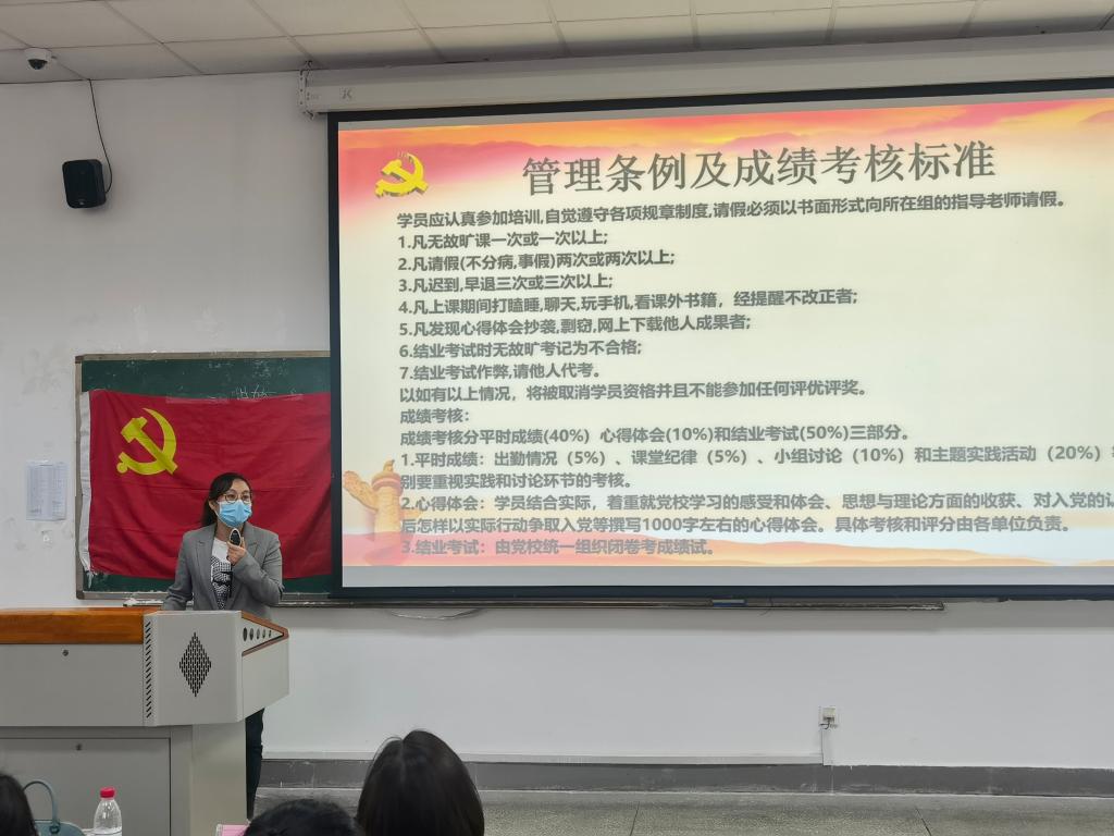 会议开始,王丽萍老师介绍了党校培训管理条例及成绩考核标准,重点强调了学员成绩环环合格的重要要求,表达了对学员们过去的成绩与努力的肯定,并祝愿学员们在本期党校学习顺利毕业。随后王莉老师宣布本次党校讨论小组的分组及其对应的指导老师、监督员、组长,同时也表达自己对学员们的祝贺和期望。