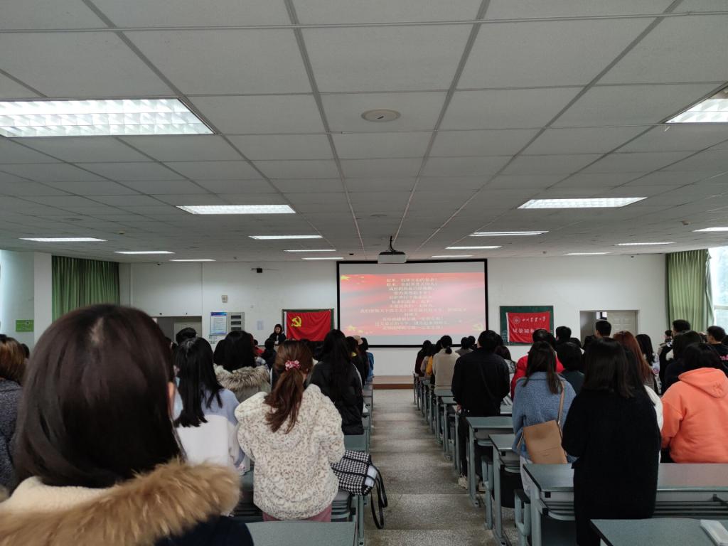 2021年3月9日下午16:20,为深入学习习近平总书记重要讲话精神,传达学习党委中心组暨中层干部会议精神,低调看球-低调jrs看球app 第一次党组织生活会议在4-A202举行。本次会议在低调看球 青年先锋队队长周悦的主持下顺利召开。