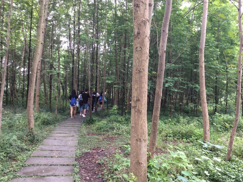 同学们通过实地走访,了解到崇州桤木河湿地公园以荷塘湿地为主,集生态旅游、休闲观光、农业产业、科普教育和湿地保护于一体的生态湿地公园。特别是围绕建设新农村示范片、省级(乡村)旅游度假区和国家AAAA级旅游景区的目标,以“最美田园湿地”为特色和主题,打造出最具川西平原地域文化特质的乡村旅游目的地。碎石铺成的小路曲径通幽,路旁花草丛生;木结构的栈桥回旋延伸,下面水波荡漾;四角飞檐的亭台古香古色,掩映在桃林深处,天然的园林味道十足,形成“水园共享,林田共存,人鸟共鸣”的生态湿地。同学们利用所学的专业知识分析和学习桤木河湿地公园的规划设计。一种名为再力花的水生植物,以其清新可人的形态挺立在水面中,这种植物不仅外形优美,更具有净化水源的作用。这里还是粮食高产稳产高效综合示范区,如何把传统的粮食种植区设计成既具有良好的经济收益有具有美学观赏价值的景观,是全体学生党员思考的问题。同学们感受到了党和国家加强生态文明建设的力度,激发了同学们爱党爱国,认真学习专业知识,在将来的学习及工作中能以实际行动参与到美丽乡村的建设中。