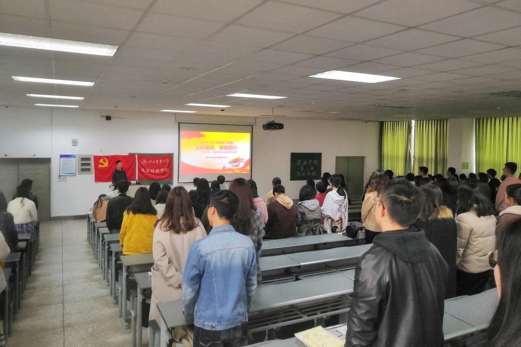 为了让党组织成员学习中央、省委有关会议和文件精神,低调看球-低调jrs看球app 于2019年3月19日下午16:20——17:20在第四教学楼A区202教室召开了党组织成员学习会议。本次会议的主题为“坚持奋进 ,砥砺前行”,旨在鼓舞党支部成员不断学习新的优秀的思想,树立鲜明的旗帜,提高自身的思想政治水准,做一名合格的中共党员。