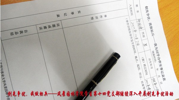 根据文件精神,结合我们学生党支部实际情况,支部继续开展了“创先争优,我做标兵——我为同学办件实事”的创优活动,学十四支部委员会制定了活动方案以及记录活动开展情况的实事登记表,支部副书记向大家详细介绍并同大家一起讨论了活动开展的具体计划和安排,要求支部每一位党员都要参与到活动中来,切实为同学办好事、办实事。同时将对在本次活动中表现突出,成绩显著的同志给予鼓励和表扬,以激发广大学生党员同志的服务意识和先进性意识,把学生党员的先进性提高到更高的水平,把学生基层党组织的基础型作用和服务作用发挥出来!