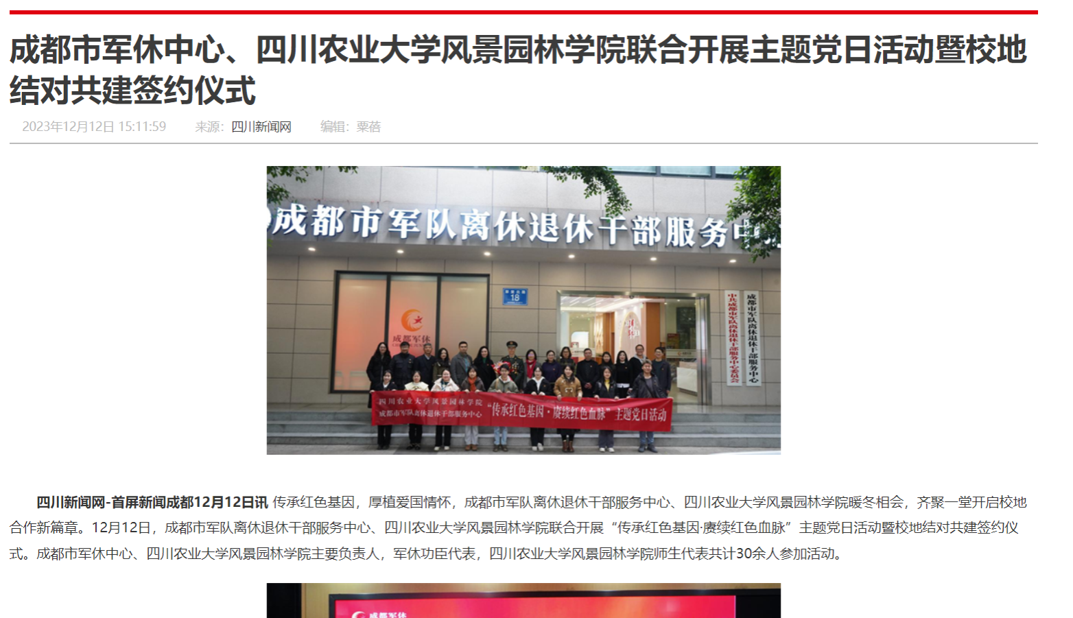 【媒体视角-四川新闻网】成都市军休中心、低调看球-低调jrs看球app 联合开展主题党日活动暨校地结对共建签约仪式