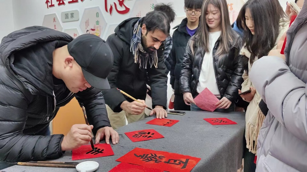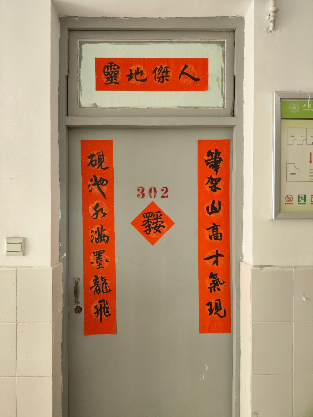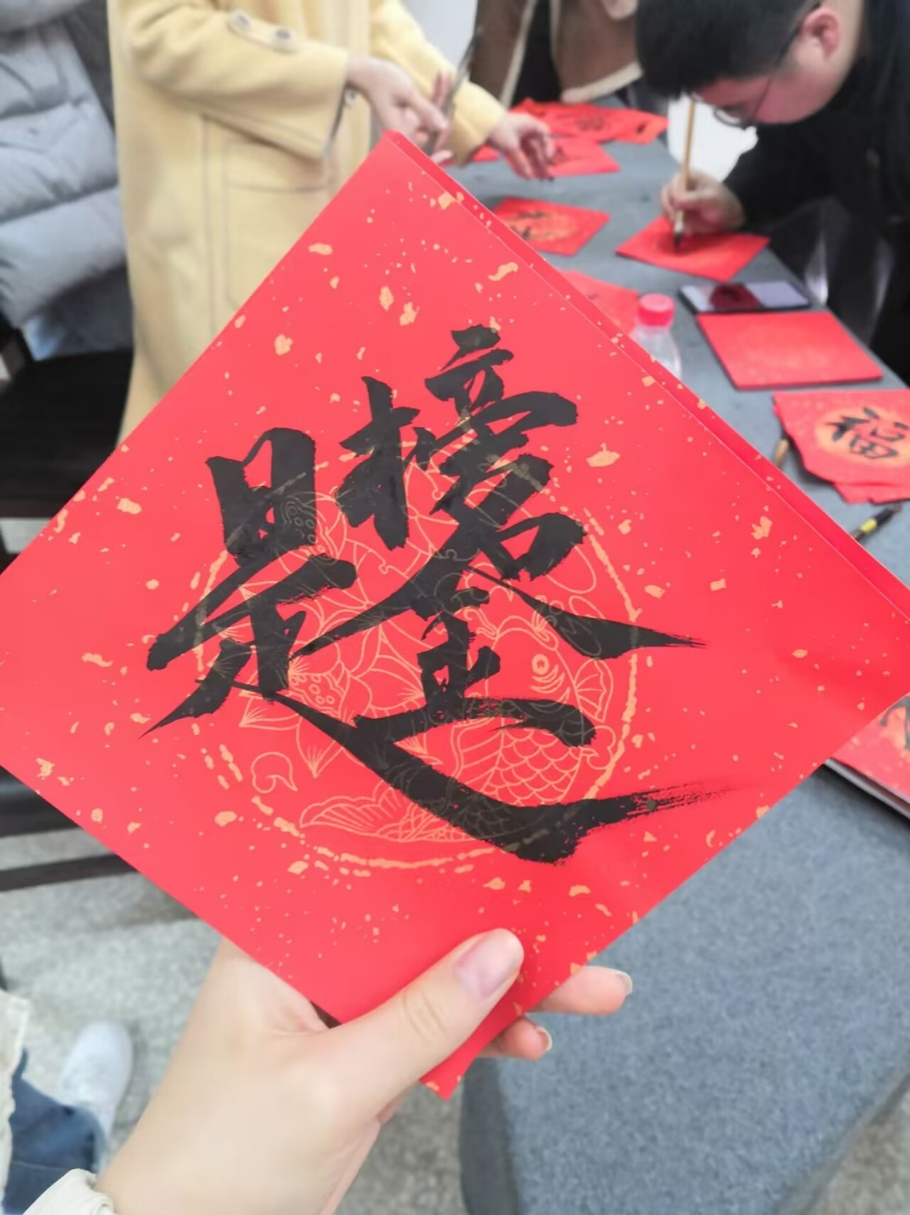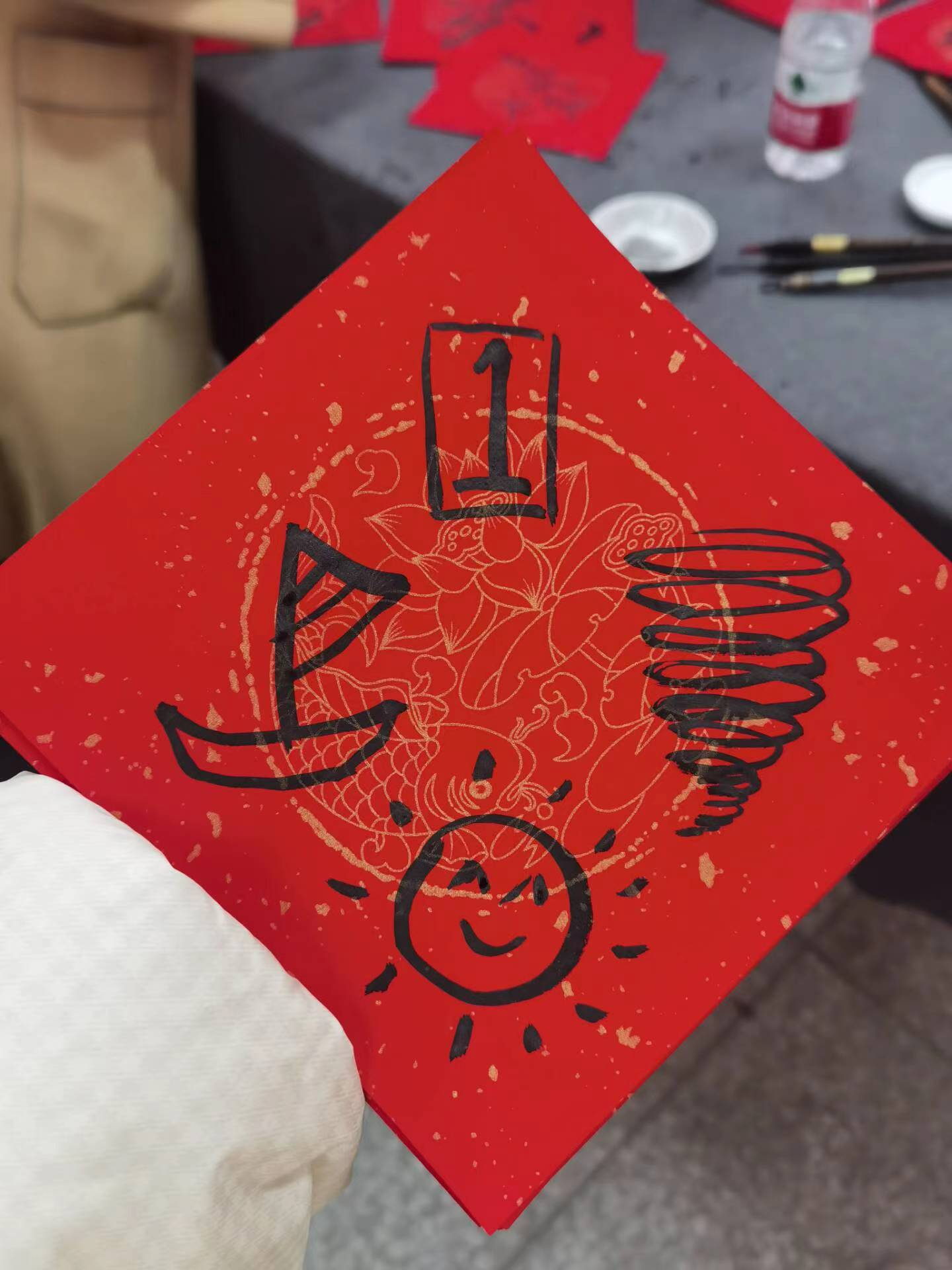 揭牌仪式结束后,工作室开展了一场主题为妙笔迎春,墨香传情师生联动美育文化体验活动。工作室邀请川台交流融合突出贡献奖获得者、风院台籍教师张益昇及环境设计系万蕊老师、学生党员、入党积极分子和留学生一起,共写春联、共绘福字,传承中华文脉、传播传统文化。参与活动的同学还将师生共同手写的春联贴在寝室门口,传递新春祝福。
