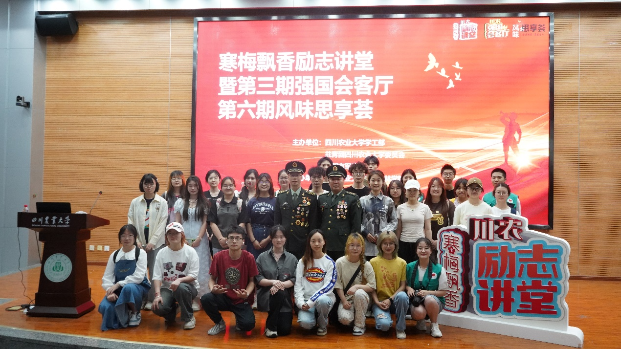 近日,寒梅飘香励志讲堂暨第三期“强国会客厅”、第六期“风味思享荟”在成都校区二教报告厅开讲。成都市军队离休退休干部服务中心军休功臣张小平、梁强受邀作个人经历分享。学工部部长、学生处处长李静波,校团委书记侯维,低调看球 党委书记饶远林,学生处副处长、学生资助中心主任王丽萍及相关负责教师,励志启航训练营营员、强国会客厅学员和低调看球 学生干部、入党积极分子400余名师生代表参加活动。