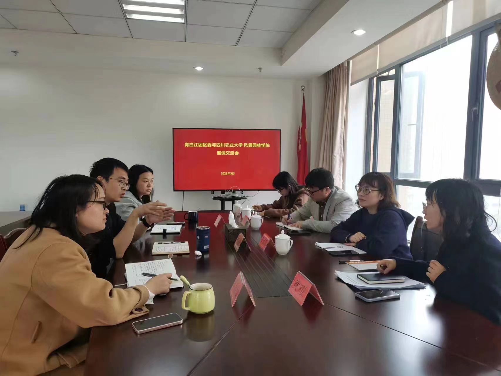 走访期间,王丽萍一行还去往青白江区团委,就开展政校地合作,助力青年成长等,与青白江区团委副书记代池瑶等进行了交流座谈。