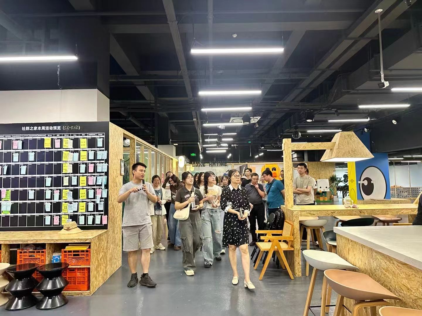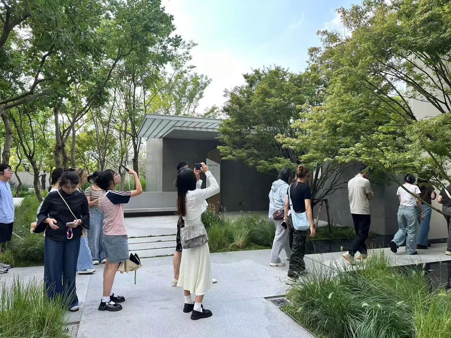 在访问中,双方就行业发展、人才培养、就业实习等方面进行了深入交流,在企业工作的往届校友还分享了自己的成长收获。此外,饶远林一行还在企业相关负责人和校友的带领下参观了万华麓湖项目各组团的景观设计案例,为学生实地感受专业应用的具体场景提供了参考。