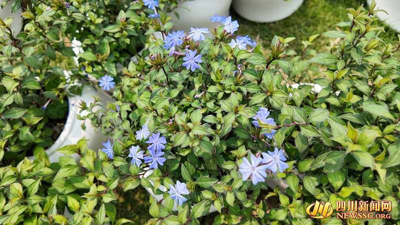 在2024年成都世园会中,蓝角柱得到大量应用,也让更多市民认识并了解到这些“川花”新品种。“蓝角柱花期一般从5月开始,一年有两个盛花期,分别在6-7月、9-10月。”在花园里,高素萍指着一株已经开出一朵朵小花的玲珑蓝角柱说,“你看,它比母本蓝角柱提前了1个月开花。说明适应性很好。”