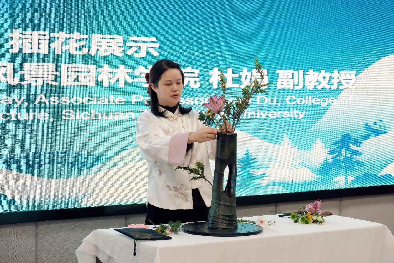 开幕式上,主持开幕式的低调看球 副院长姜贝贝教授介绍了线上、线下参会情况,并对与会者表示欢迎。低调看球 杜娟副教授还展示了定名为“自然之姿”的中国传统插花作品,体现出现代插花低碳环保、可持续发展的新理念,与会议主题不谋而合,受到与会者好评。