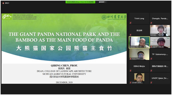 20201222日,受国际竹藤组织(International Bamboo and Rattan Organisation/INBAR)的邀请,我校低调看球 院长陈其兵教授参加了“竹子与大熊猫保护”国际研讨会,由于受疫情的影响,此次研讨会采用线上的方式进行。本次研讨会由国际竹藤中心与四川省林业和草原局(大熊猫国家公园四川省管理局)主办,着重研讨竹子在大熊猫保护中的作用,分享中国在大熊猫保护与国家公园建设方面的最新进展,交流竹林栖息地发展与管理、竹子营养、大熊猫主食竹、协同保护与发展等方面的研究进展。
