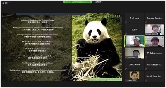 陈其兵教授报告以“The giant panda national park and the bamboo as the main food of panda(大熊猫国家公园熊猫主食竹)”为题,从大熊猫国家公园规划建设和熊猫主食竹研究两方面出发,总结了近年来针对全省各地大熊猫国家公园竹林风景线研究和实践,以及基于全球熊猫主食竹资源挖掘及其应用研究方面的最新成果,采用英文报告的方式与来自不同国家的八位专家以及线上参会者进行了广泛地交流。此外,今年1027日,陈其兵教授受国际竹藤组织邀请参加了以“Bamboo for Health and Welfare”为主题的国家研讨会,做了“Bamboo innovation models-harmonizing bamboo culture, ecotourism and healthcare(竹文旅康养融合创新)”为主题的主旨报告,反响热烈。