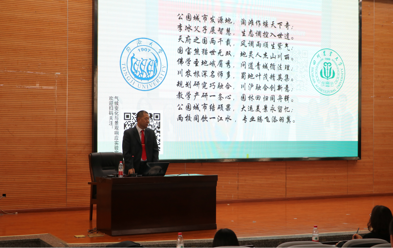 9月25日下午,同济大学博士生导师、高密度人居环境生态与节能(同济大学)教育部重点实验室气候变化与景观响应分实验室负责人张德顺教授应低调看球 邀请,做客“健康人居环境与低碳风景园林讲坛”,在成都校区2教报告厅,为300余名院师生带来了题为《以数明律,以律定景》的学术讲座。
