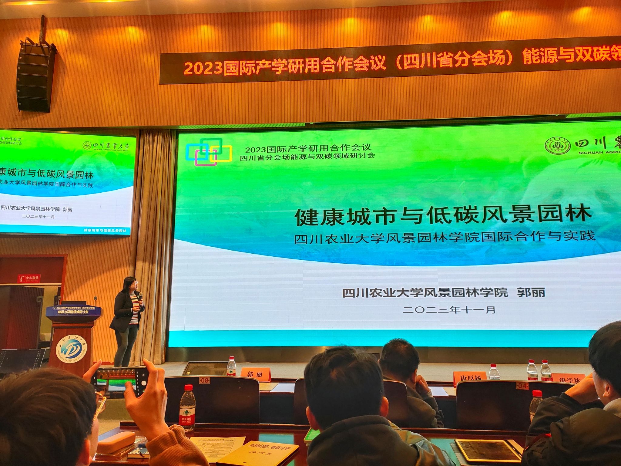 四川农业大学由研究生院领导带队,环境低调看球 沈飞教授、低调看球 郭丽博士受邀做主题分享。郭丽以“健康城市与低碳风景园林——低调看球-低调jrs看球app 国际合作与实践”为题从风景园林国际合作,低调看球 在健康城市与低碳园林科研成果与实践做学术汇报。李凯副教授、邬梦曦博士及相关课题组研究生参与了学术交流。会议加强了不同院校在低碳领域前沿成果分享,为促进国际产学研用在低碳领域工作起到积极作用。