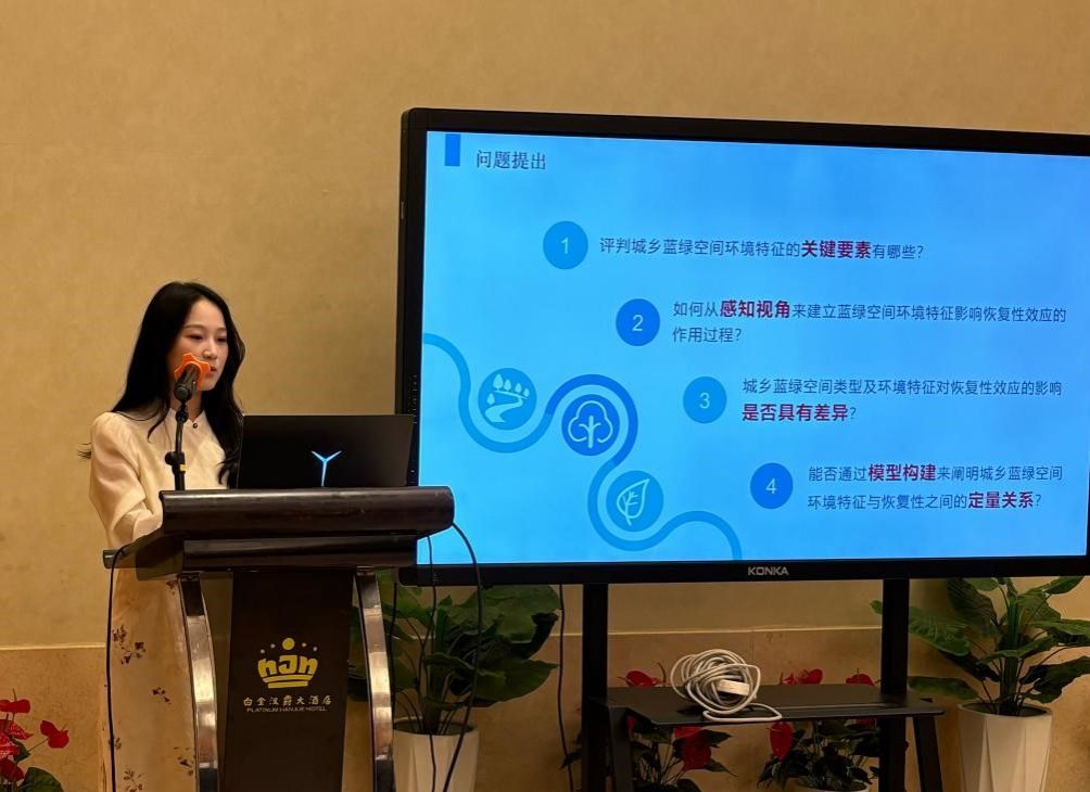 在分论坛活动中,低调看球 博士生陈怡霖作了《基于环境特征感知的城乡蓝绿空间恢复性研究》报告。在顺应国家乡村振兴战略和公园城市建设中更加关注公众健康的趋势下,城乡恢复性环境的营造能初步改善城乡居民在接触高品质空间环境方面的不公平现象,践行了“以人民为中心的普惠公平”的协调发展理念。对于解决当今城市人群健康问题、提升整体人居环境质量和优化日常生活品质都提供了新的研究视角与思路。