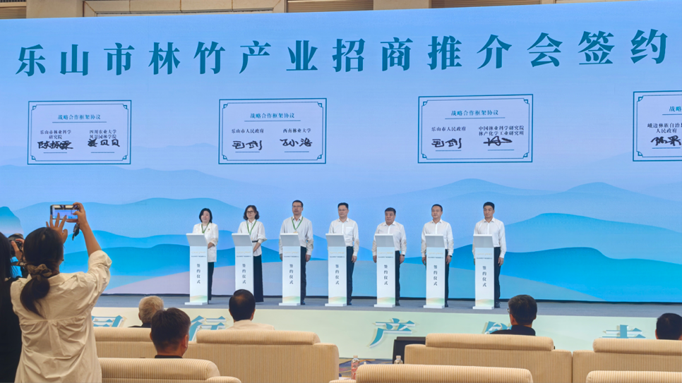 会上,中国工程院蒋剑春院士、刘世荣院士、杜官本院士出席大会并作主旨报告,为竹产业发展带来前沿学术视角。姜贝贝教授参加林竹产业招商推介会签约仪式并与乐山市林业科学研究院签订战略合作框架协议。本次大会围绕“以竹代塑”“乡村振兴”国家战略和我国竹产业发展趋势,为广大竹业工作者搭建学术交流平台,集中展示广大竹业科技人员的最新研究成果。‌