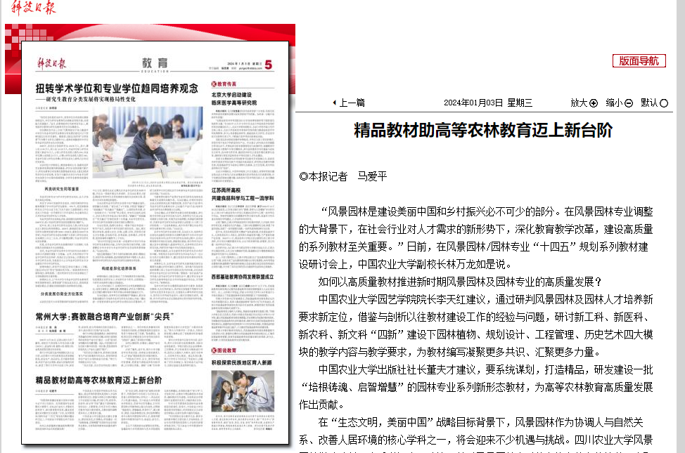【媒体视角-科技日报】精品教材助高等农林教育迈上新台阶