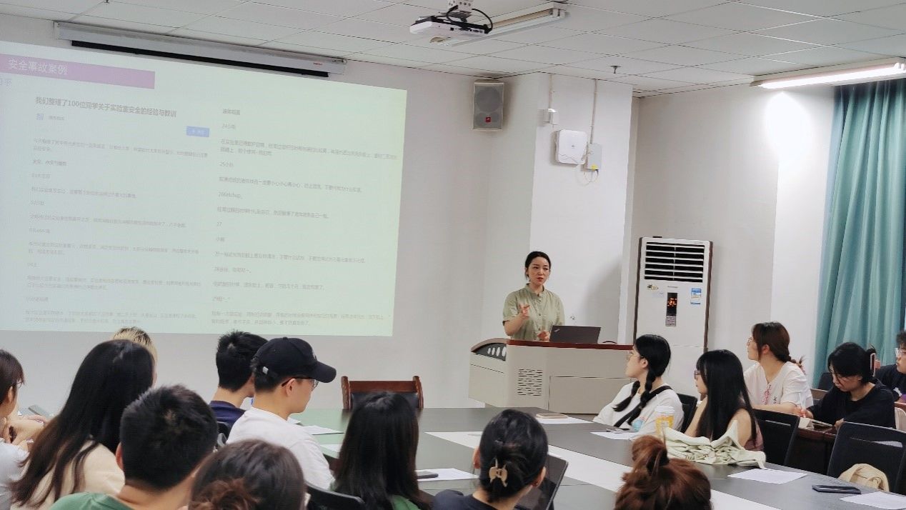 本次培训中,姜贝贝副院长结合近年来的实验室安全事故案例,将安全理论与实践相结合,为同学们讲解了实验室安全的重要性,强调安全是开展科学研究活动的基础和底线,要时刻心存敬畏、筑牢安全意识,严格遵守操作规程、保持实验室环境的整洁有序;实验管理员杨丽娟老师则为同学们讲解了实验室安全信息识别、用电安全、化学品安全、管制类化学品的分类和管理以及危险化学品的领用、存储、使用和规范处置流程等。