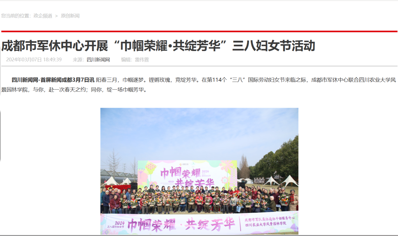 【媒体视角-四川新闻网】成都市军休中心开展“巾帼荣耀·共绽芳华”三八妇女节活动