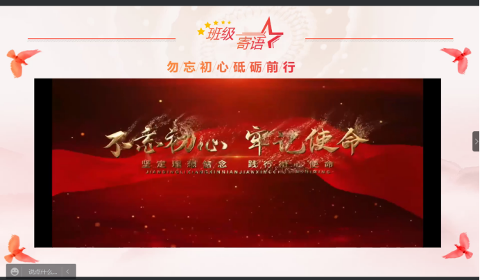 021年11月24日,风景园林1808班的第十九届六中全会主题学习团日活动在腾讯会议顺利进行,参与本次团日活动的有监督员同学周雨欣和风景园林1808班的全体同学。