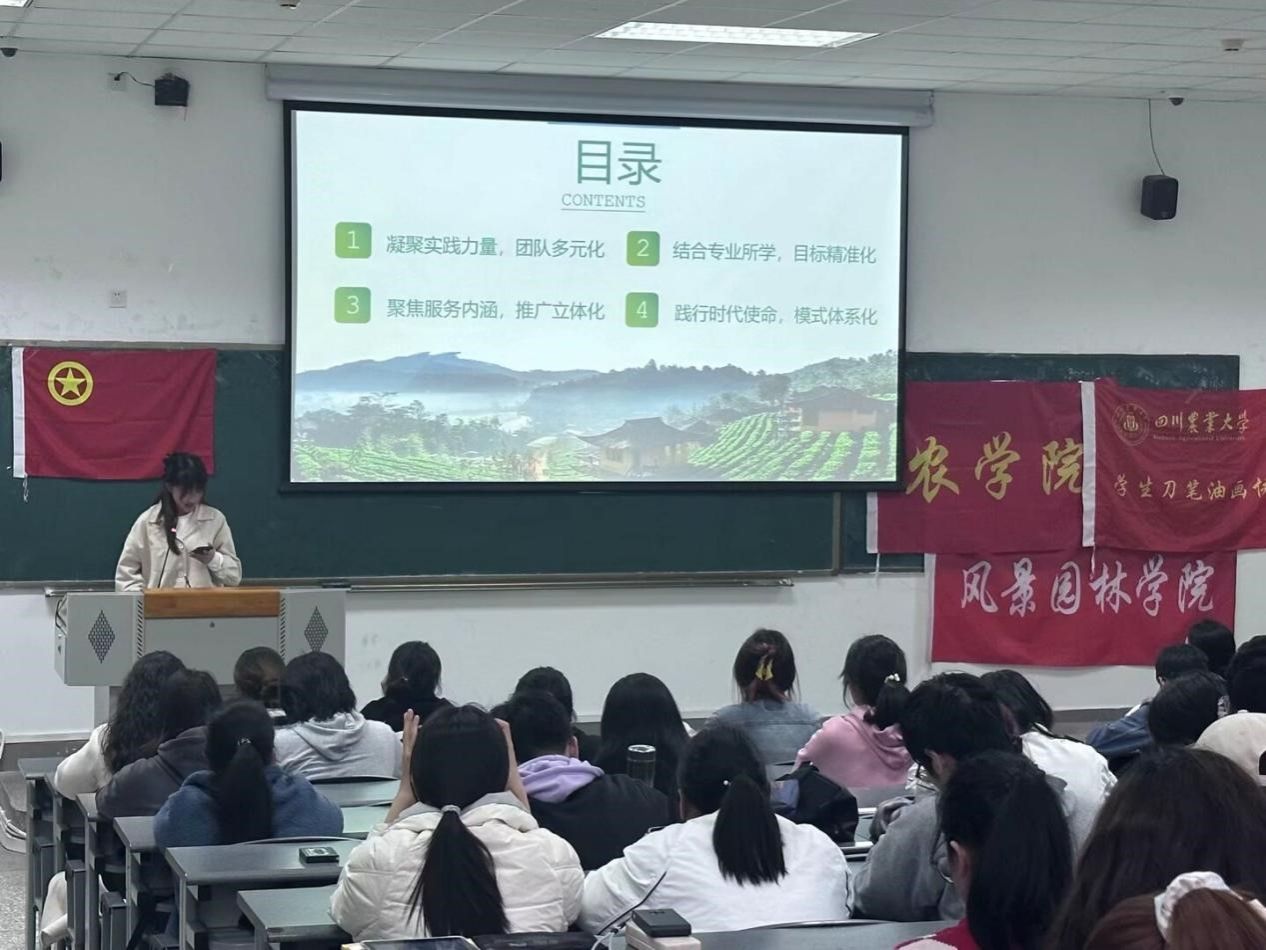 3月19日,园林22-1团支部、园林23-2团支部、植保22-2团支部、农学23-3团支部以及学生刀笔油画社团联合,在四川农业大学成都校区4教A区207,开展了“学两会精神,做追‘锋’青年”三月主题示范性班团活动。