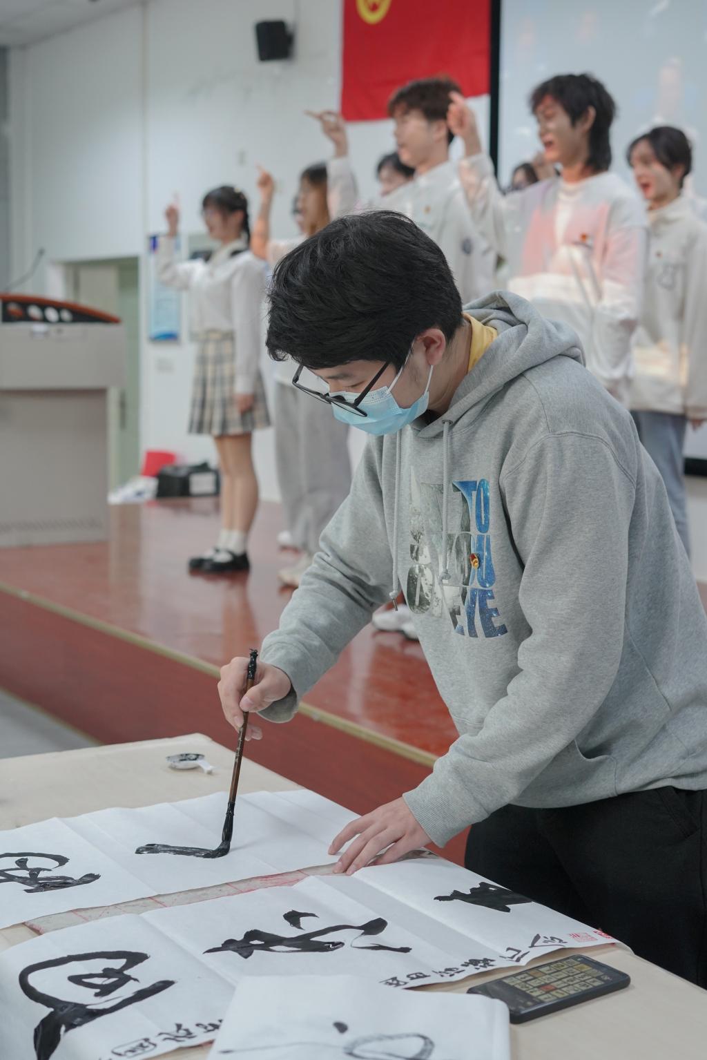 活动最后,低调看球 啦啦队带来“一起向未来”手势舞表演,同时林低调看球 书画队成员展示其主题的书法作品,共同合作完成表演。