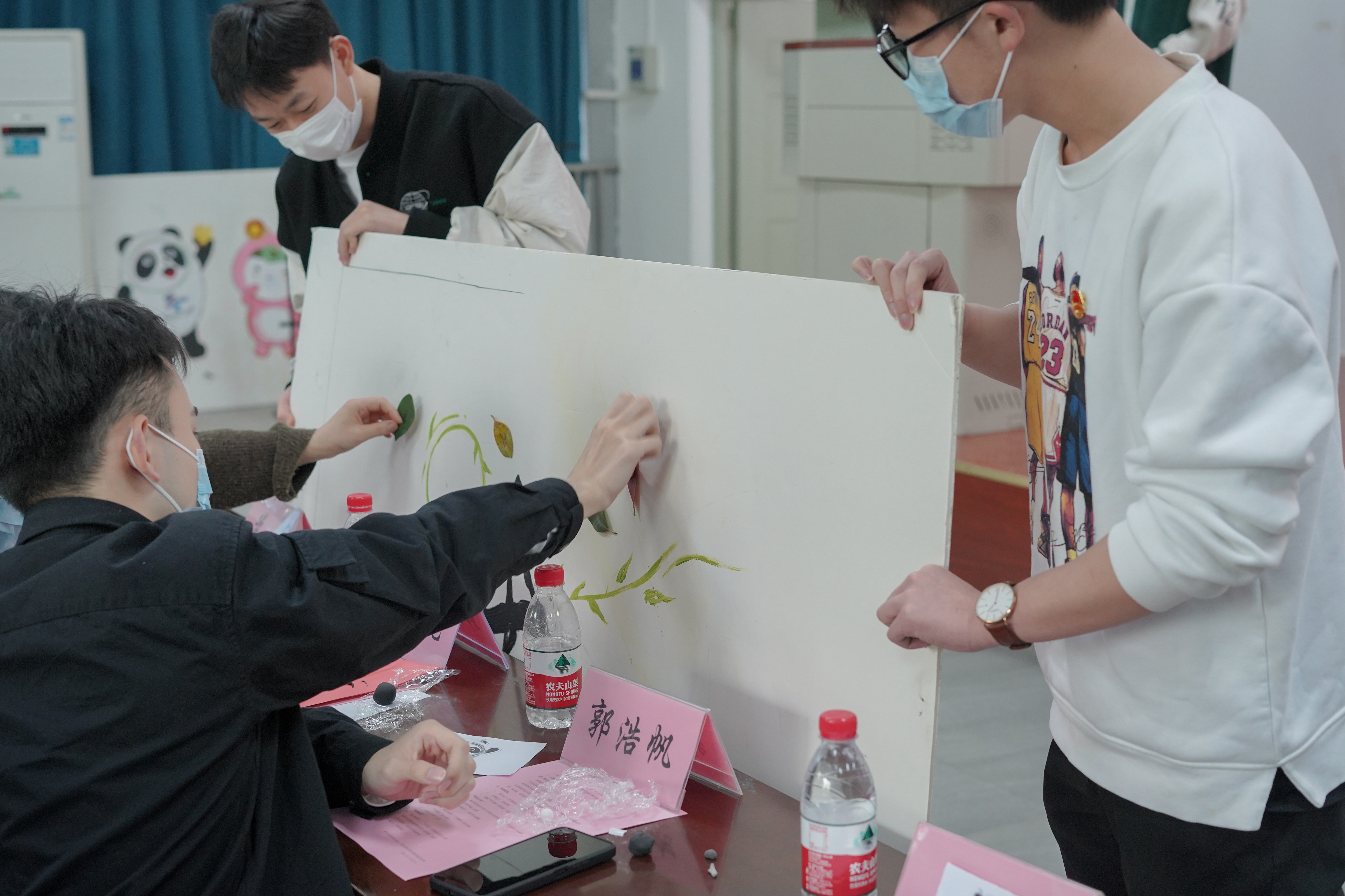 活动中,现场主持进行了有关两会热点和北京2022冬残奥会的知识有奖问答环节,同学们在线上积极应答。随后,由低调看球 辩论队同学在现场通过表演形式,模拟两会场景,使同学们更加深刻了解两会的进行过程。接着,主持人通过抽奖形式随机抽取同学用手中的树叶装饰“团团”,随后让在座同学用叶子共同装饰以“林”字为中心的展板。紧接在后的,社会实践代表“小树苗”团队队长进行实践经历分享,与同学们交流寒假社会实践经验。