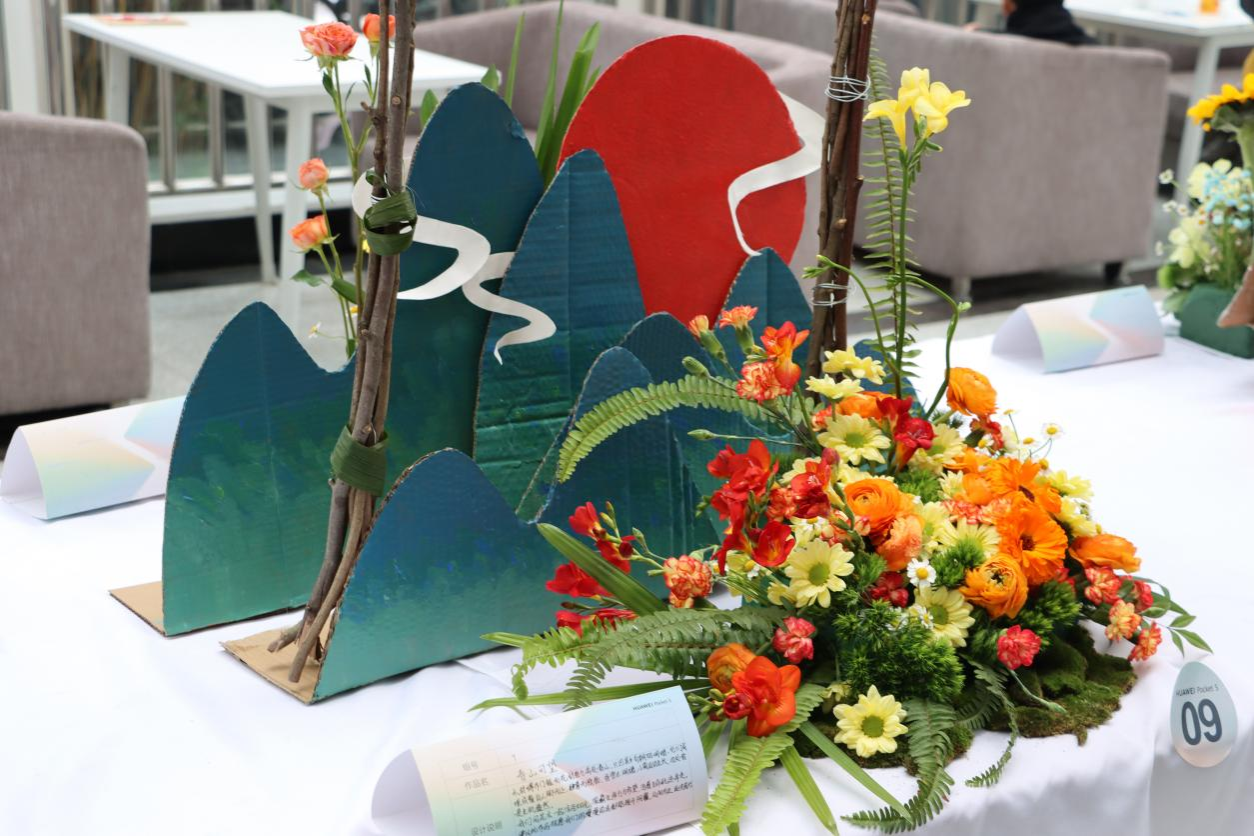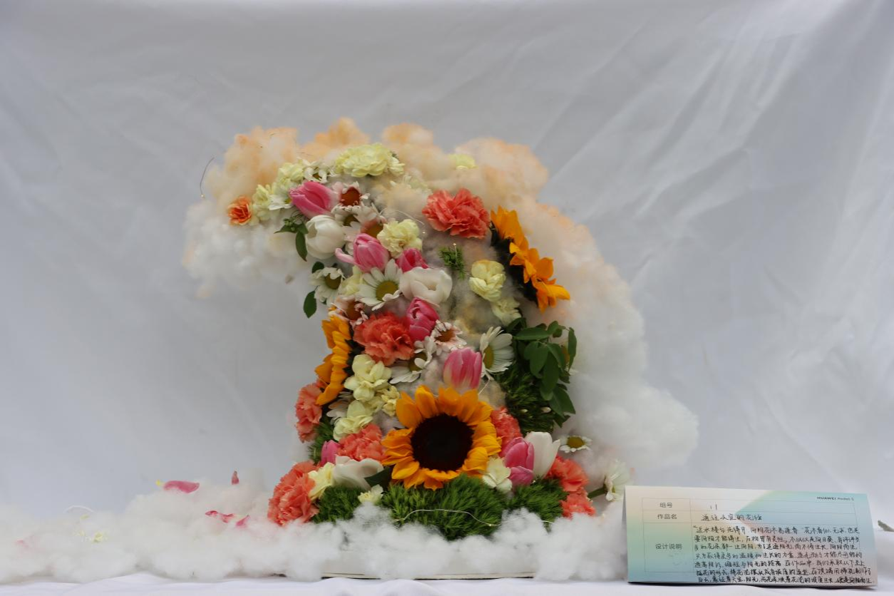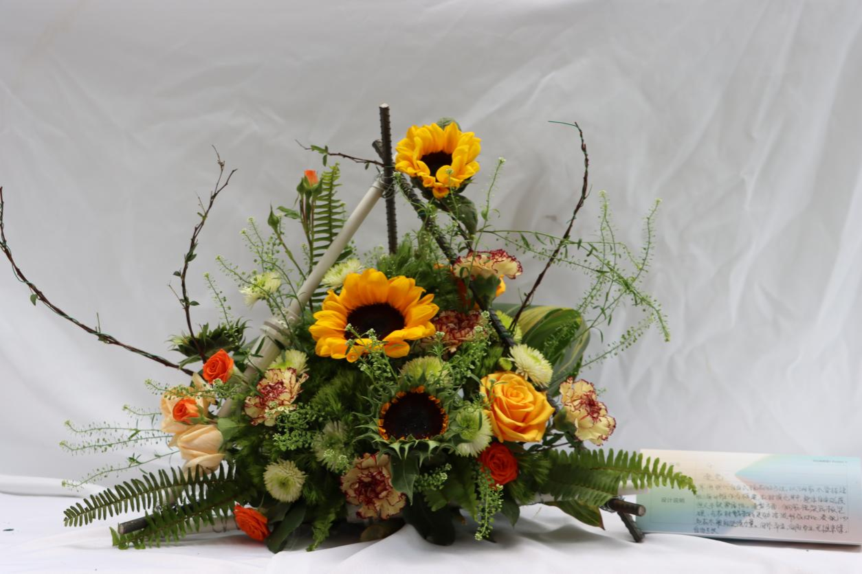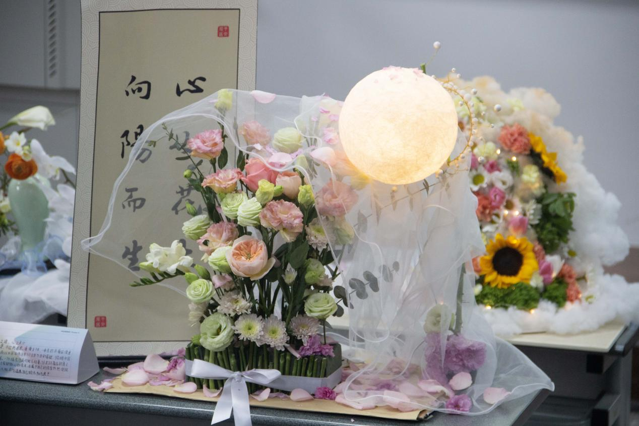 本届比赛采取线上线下相结合的方式进行,经过初赛、复赛,最终66名选手从1400余位参赛同学中脱颖而出进入到当天的决赛。经过现场4个多小时的激烈角逐,作品《无畏的希望》用泰迪重瓣向日葵为主花;鸢尾、玫瑰、郁金香等为配花;浅色康乃馨为点缀,以其对比赛主题的良好表达和现场创意变现力,摘得比赛桂冠。作品《枯木逢春,逐日生花》《通往天空的花径》夺得二等奖;《花之语,心之声》《春山可望》《花沁心阳》获得三等奖。