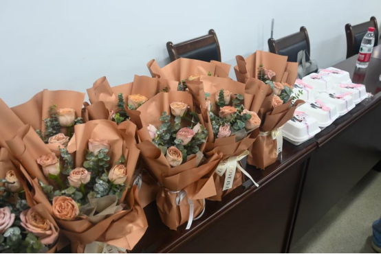 (图为为风院团学青精心准备的手捧花与蛋糕通讯员唐乐)
