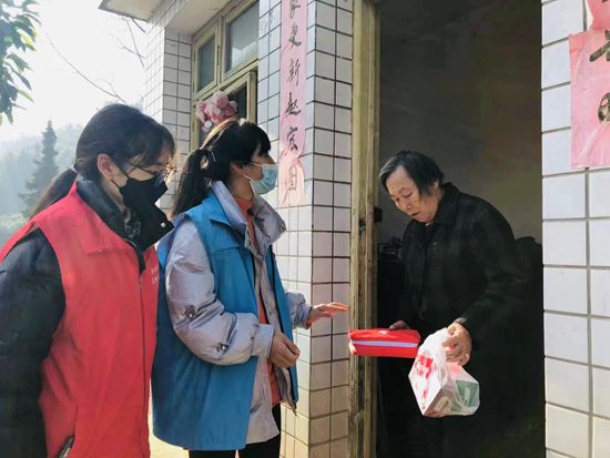 四川农业大学动物医低调看球 伍佳玲同学(左二)上门给老人送健康包。本组图片由四川农业大学团委提供
