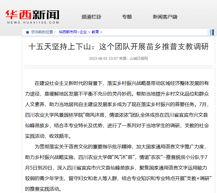 【2023暑期社会实践】(华西新闻)十五天坚持上下山:这个团队开展苗乡推普支教调研