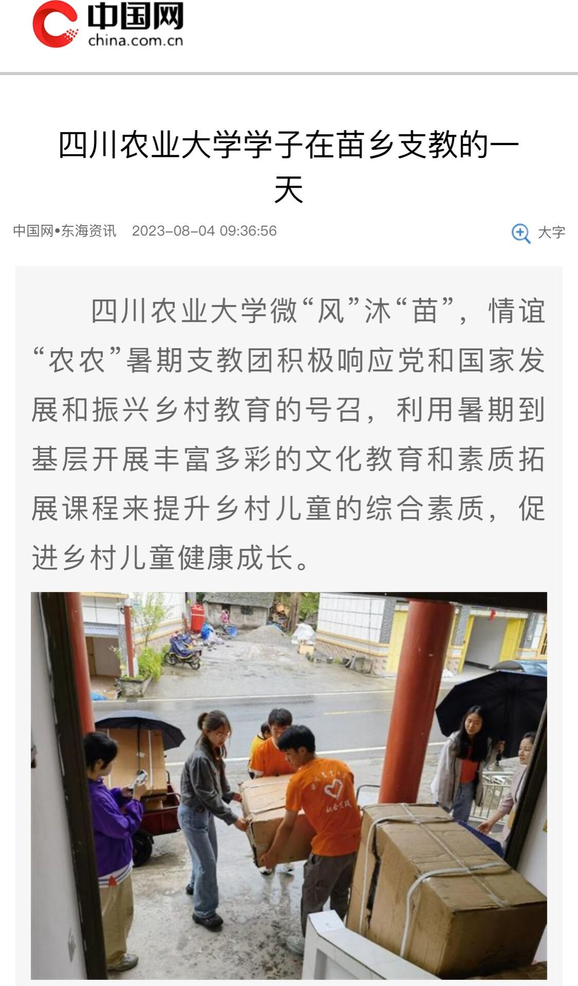 四川农业大学微“风”沐“苗”,情谊“农农”暑期支教团积极响应党和国家发展和振兴乡村教育的号召,利用暑期到基层开展丰富多彩的文化教育和素质拓展课程来提升乡村儿童的综合素质,促进乡村儿童健康成长。