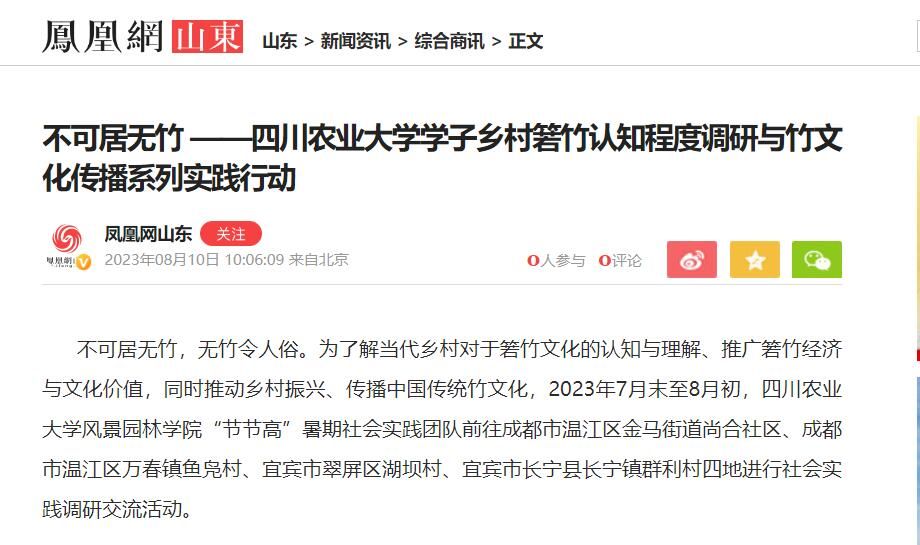 不可居无竹,无竹令人俗。为了解当代乡村对于箬竹文化的认知与理解、推广箬竹经济与文化价值,同时推动乡村振兴、传播中国传统竹文化,2023年7月末至8月初,低调看球-低调jrs看球app “节节高”暑期社会实践团队前往成都市温江区金马街道尚合社区、成都市温江区万春镇鱼凫村、宜宾市翠屏区湖坝村、宜宾市长宁县长宁镇群利村四地进行社会实践调研交流活动。