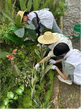 “青山队”成员凭借其专业素养与竞赛经验,在铁牛村的三处空地展开了一场别开生面的“绿色革命”。他们巧妙运用插花艺术与生态种植技术,将仿真花与真实植物如光辉岁月、迷迭香、金丝苔草、火星花、福禄考、红叶亚麻等巧妙融合,不仅美化了环境,更让这片曾经荒芜的土地焕发出勃勃生机。同时,队员们还带来了四川农业大学的特色植株与种子,与村民携手共植,促进了城乡生态文化的交流与融合,让村民在参与中感受到自然生态的无限魅力。