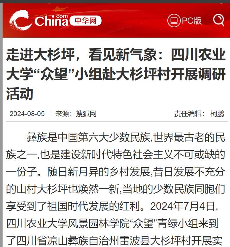 彝族是中国第六大少数民族,世界最古老的民族之一,也是建设新时代中国特色社会主义不可或缺的一份子。随日新月异的乡村发展,昔日发展不充分的山村大杉坪也焕然一新,当地的少数民族同胞们享受到了祖国时代发展的红利。2024年7月4日,低调看球-低调jrs看球app “众望”青绿小组来到了四川省凉山彝族自治州雷波县大杉坪村开展实践调研活动,通过与当地村委会和居民积极联络和多方面协调,实践小组深入村中多户居民家中,切实了解大杉坪村的普通话普及程度、生态环境以及当地的经济产业情况。