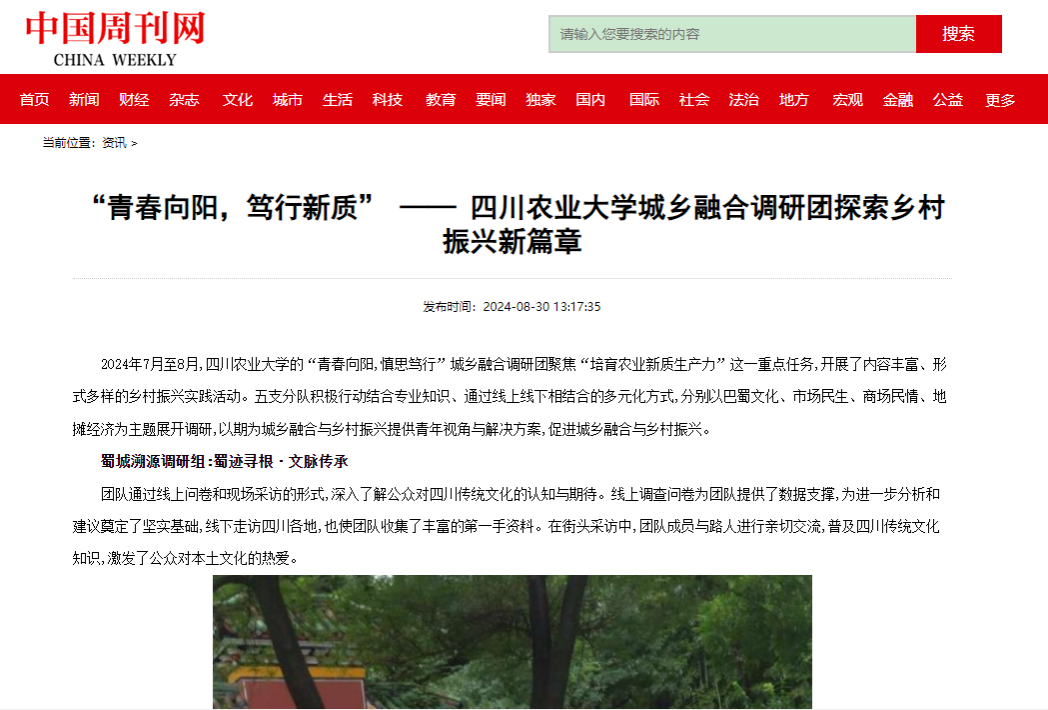 【媒体视角-中国周刊网】2024暑期社会实践:“青春向阳,笃行新质” —— 四川农业大学城乡融合调研团探索乡村振兴新篇章