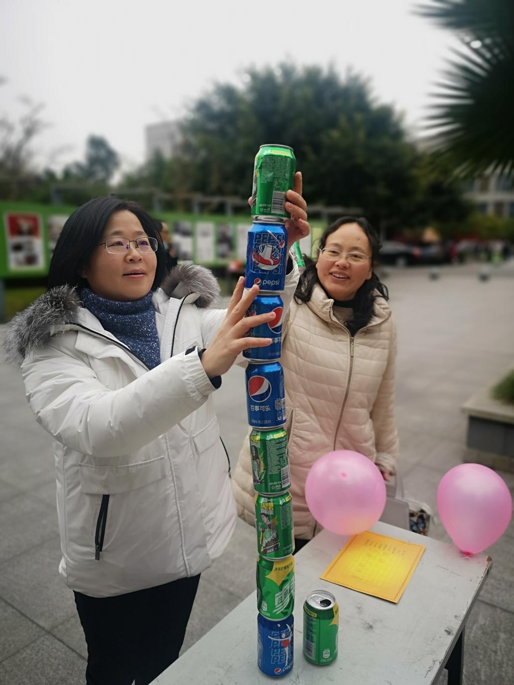 护宝前行活动现场,老师们拿着球拍,端着乒乓球,在保证球不掉下来的前提下,按照规定路线你追我赶;一气呵成既考验老师们的肺活量,也要有技巧才能完成。击鼓赛场就你争我夺,互不相让,欢声笑语不断,气氛热烈而祥和。趣味横生的游园活动丰富了教职工们文体生活,增进相互间的了解,增强低调看球 凝聚力和向心力,以积极向上的精神风貌迎接2021新年的到来。
